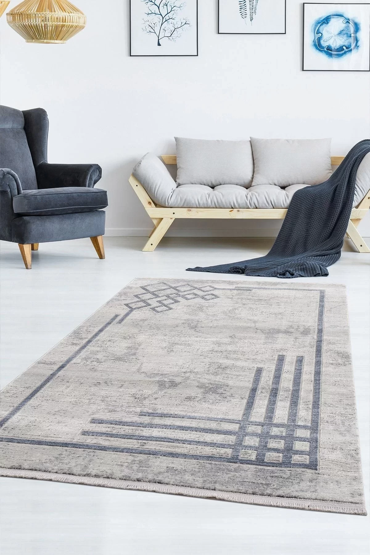 Breda Modern Salon ve Oturma Odası Halısı - Mavi